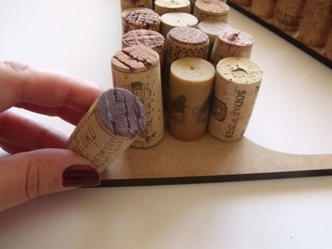 Agora, comece a colar as rolhas pelas partes mais largas. Encaixe muito bem uma rolha na outra.