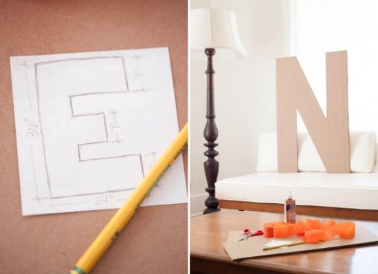 Você pode fazer letras grandes decoradas para decorar o quarto de seus filhos ou até mesmo a sala de sua casa.