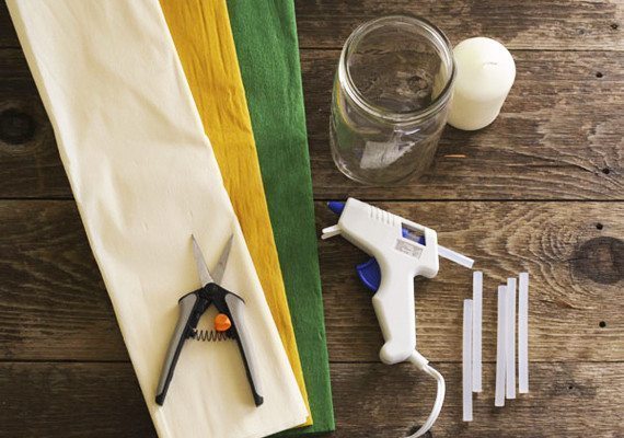 - Pote de vidro ou suporte para vela com o modelo, a cor, o tamanho e o estilo de sua preferência;