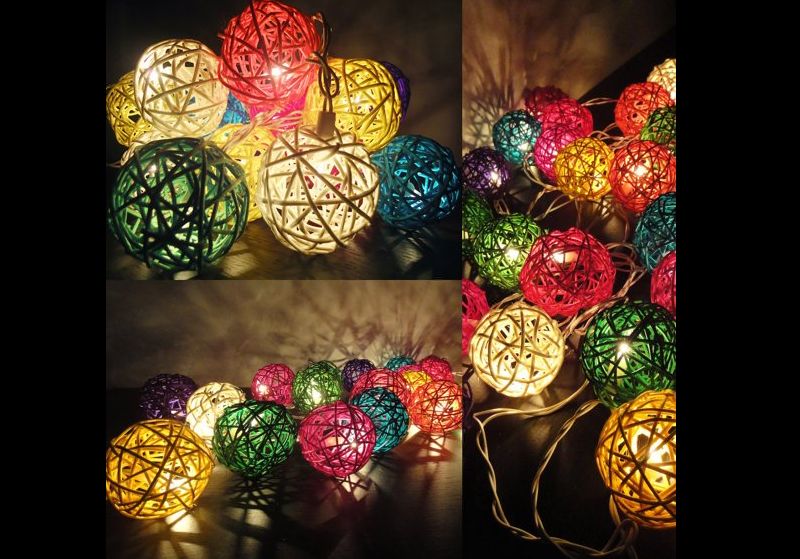 luminaria de barbante colorida