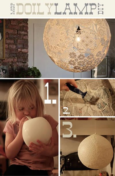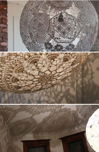 Não é difícil termos guardado aquelas lindas toalhinhas de crochê. Antigamente eram muito usadas para colocar o telefone ou até mesmo na mesa, para pôr a garrafa de café. Você pode usar esses mimos para fazer algo mais gracioso ainda, trata-se de uma luminária super moderna e que irá deixar a casa muito mais bonita.