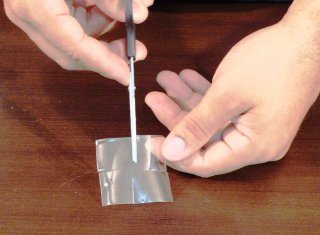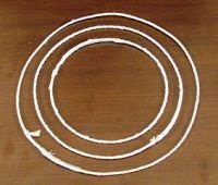 Em seguida, faça três círculos com o arame grosso e com os círculos possuindo tamanhos decrescentes e encape-os com o auxílio de pedaços de fita adesiva com a cor de sua preferência.