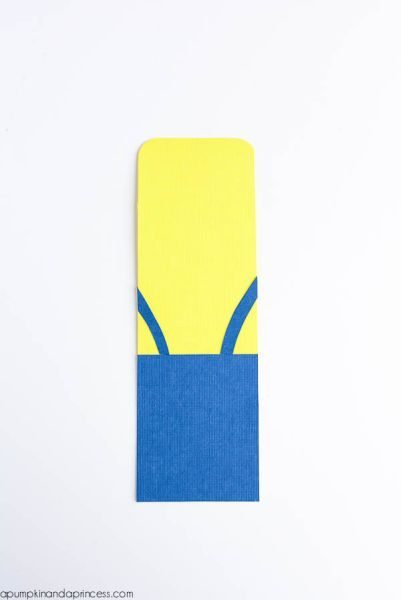 Logo após, cole o quadrado azul e corte e cole duas alças para os suspensórios.