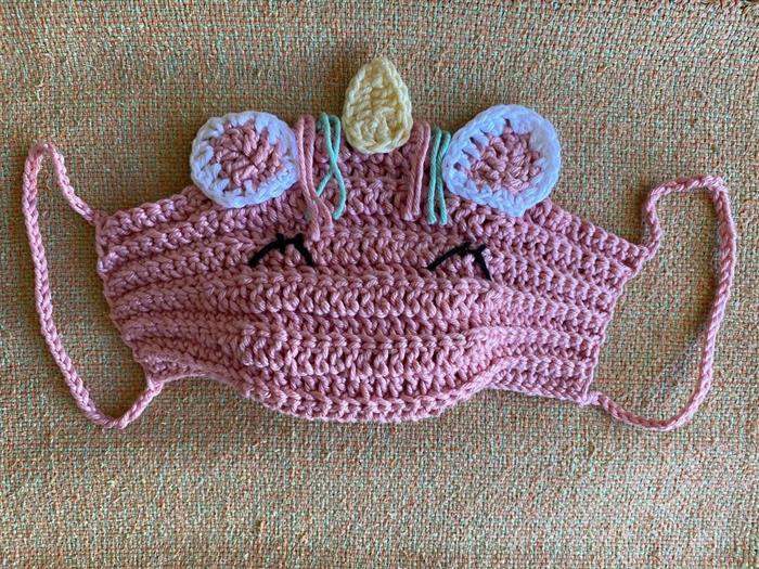 Máscara de unicórnio feito em crochê