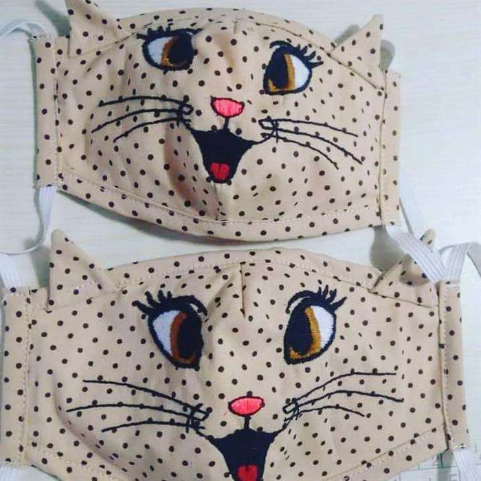 Máscara de bichinho com bordado de linha