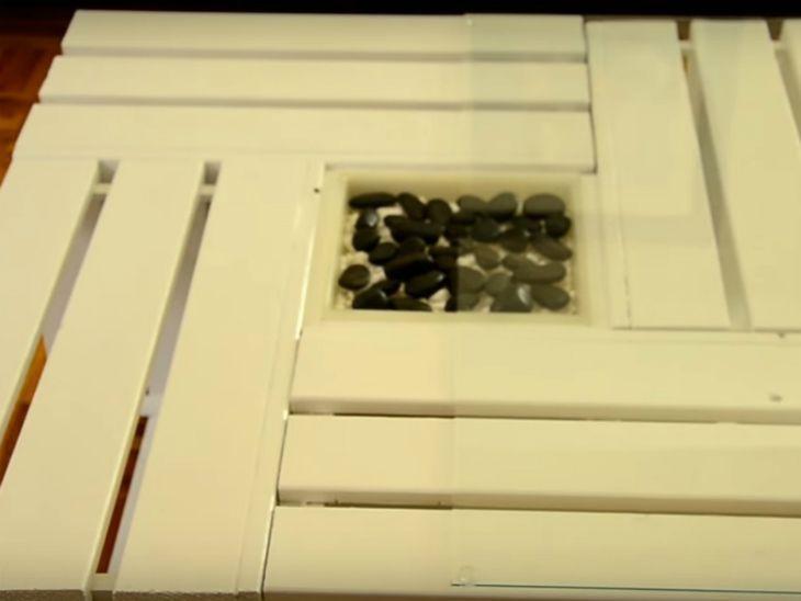 Para finalizar a sua peça, coloque pedras dentro da bandeja, ou o enfeite que você desejar, e coloque o tampo e vidro, se possuir. E está pronto!