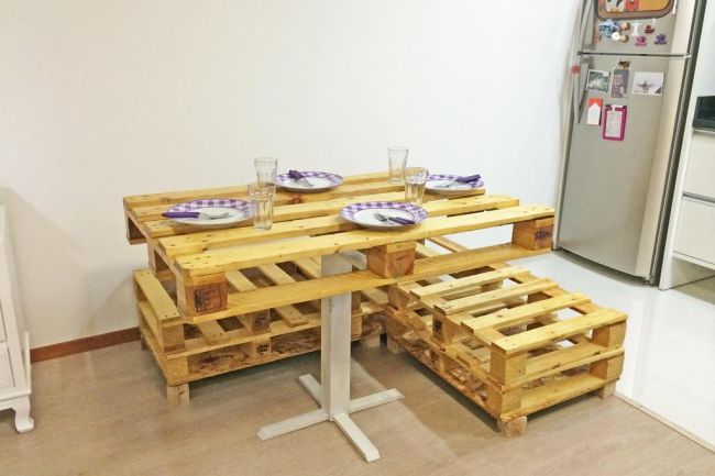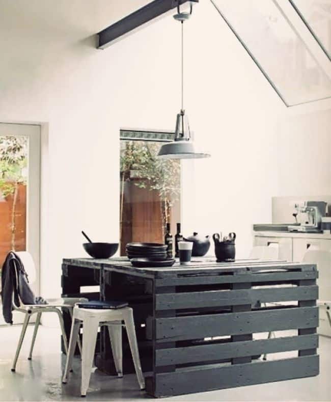 A mesa de pallet para cozinha decora com primor e ainda é muito funcional.