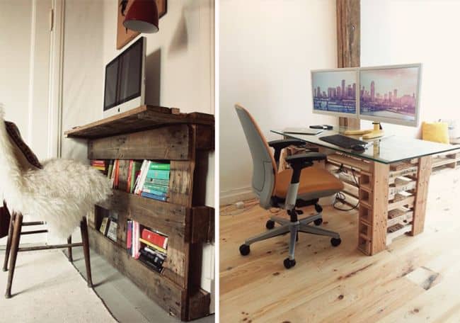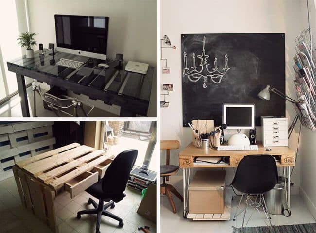 A escrivaninha de pallet pode ser feita de diversas maneiras e com diversos complementos.