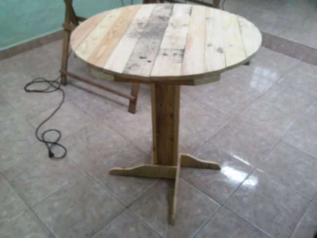 Até mesas redondas podem ser feitas com pallets.