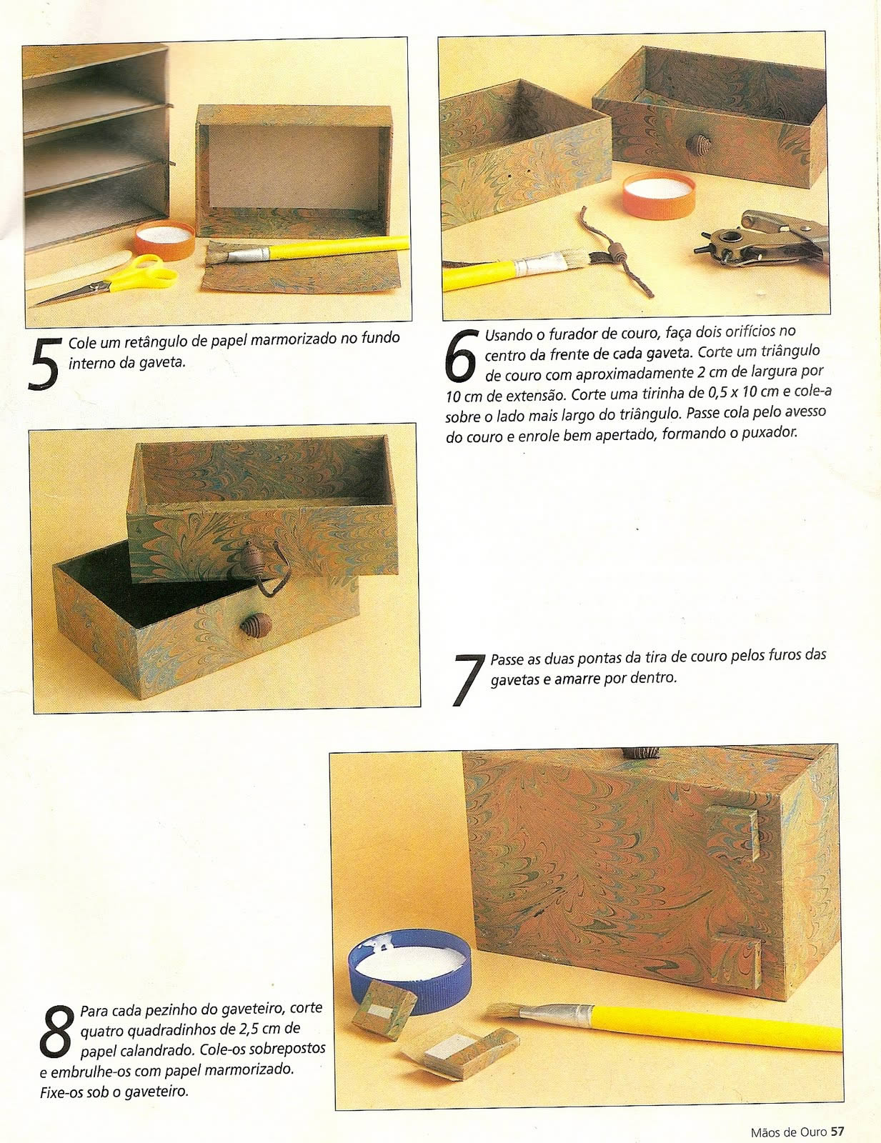 A partir de um passo a passo que achamos na rede, vamos te mostrar como você pode renovar o visual do seu gaveteiro e deixar ele com cara de novo! Basta reservar o seu gaveteiro, lixar bem, escolher um bom papel craft e providenciar os outros materiais necessários para a confecção desta peça. É um artesanato bem legal de se fazer em casa e você poderá aprender como realizar a cartonagem em um guia bem simples que trouxemos para você.