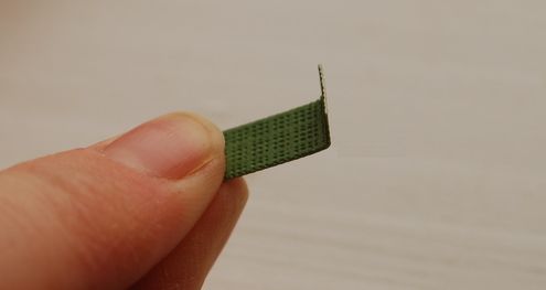 Logo após, corte uma tirinha verde e dobre a ponta.