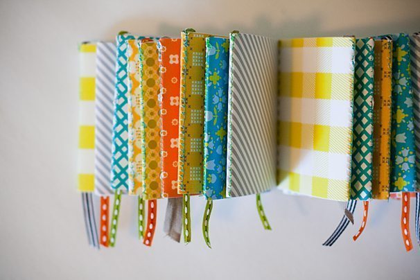 Comece escolhendo o tecido que você quer usar. Depois retire a capa do seu minilivro ou corte os papéis com o tamanho que você quer para fazer o seu próprio minilivro.