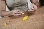 Agora vem a etapa mais importante do trabalho. Para que os palitos fiquem bem firmes, este terminal deverá ser fechado, no momento em que o trabalho estiver bem apertado.