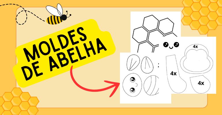 Para deixar sua abelha ainda mais bonita, você pode fazer moldes de potes, favos de mel e flores coloridas de vários formatos e tamanhos.