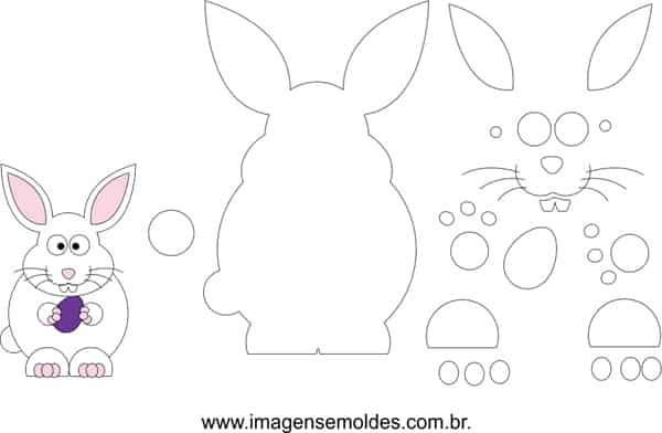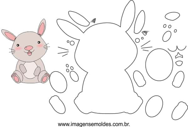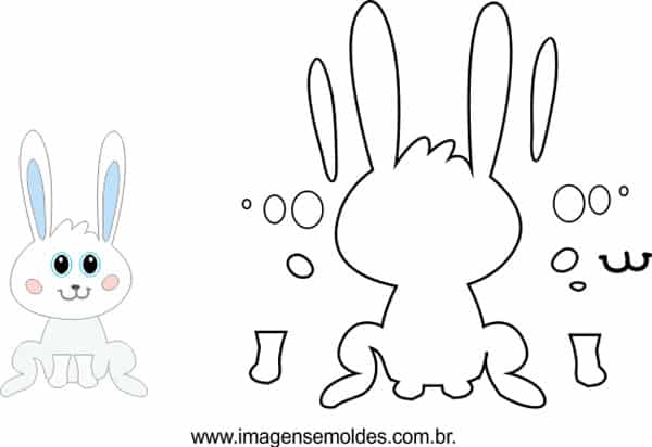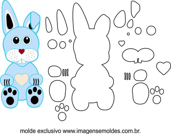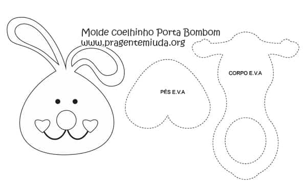 Você vai ver por aqui molde de coelho porta bombom de EVA, molde de coelho em feltro para imprimir, molde de coelho de pelúcia, molde de coelho de tecido, entre muitos outros. E é sempre bom lembrar que um molde pode ser usado para a confecção de peças de diversos materiais e não somente com o material indicado no molde. Se você for trabalhar com feltro, tecido ou pelúcia, por exemplo, basta cortar duas vezes o molde e não apenas uma como acontece quando você trabalha com EVA.