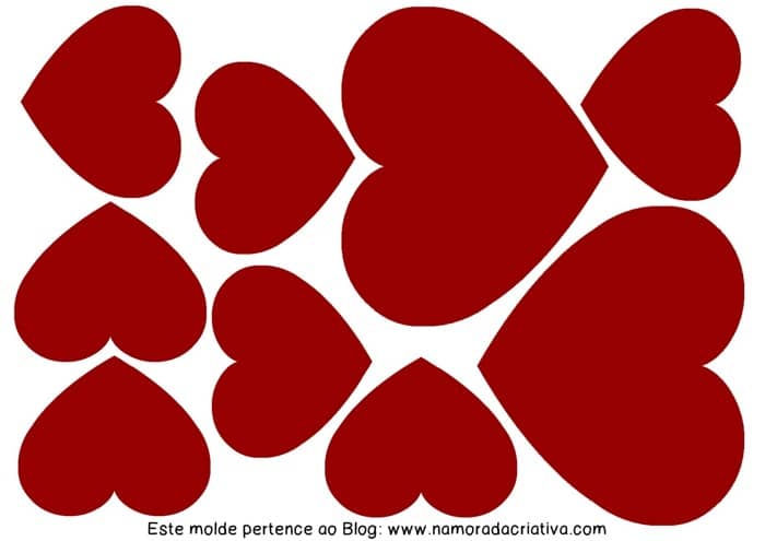 Você pode trabalhar com EVA, feltro, papel e até tecido com um molde de coração, imagine as maravilhas que você vai poder criar com os muitos tipos e, tamanho pequeno e grande para recortar, deste post. Você vai deixar a todos de queixo caído com o seu talento.