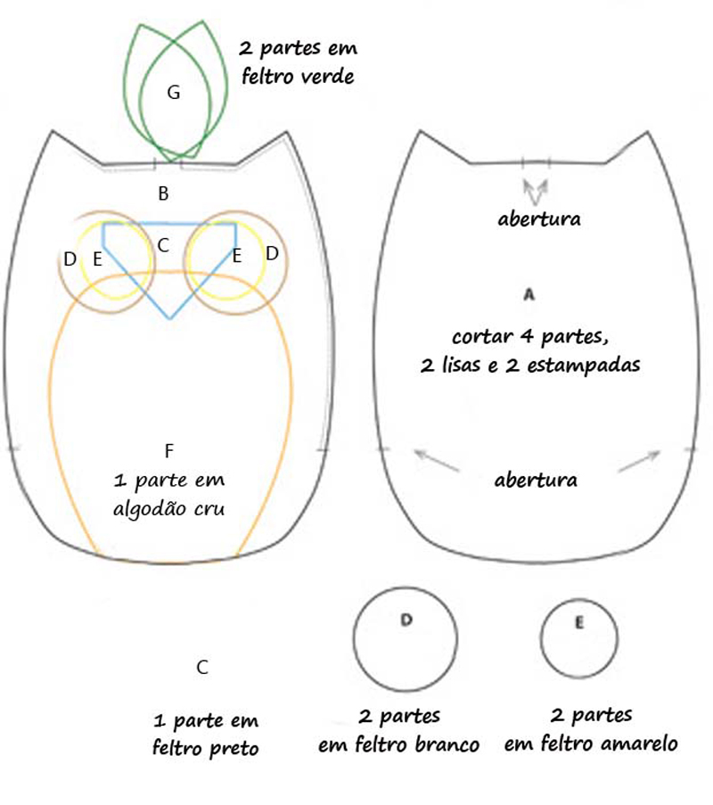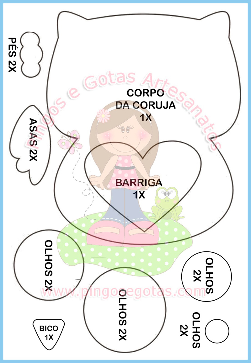 Veja o restante dos modelos de molde de coruja para aplique desenhos para imprimir.
