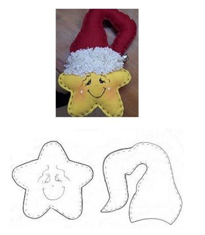 Use também estrela de Natal com gorro de papai Noel. Faça a estrela na cor amarela e o gorro de papai Noel vermelho. As imagens utilizadas nesse artigo foram retiradas do Blog http://blogdatia-jaque.blogspot.com.br/ e do portal www.dicasdeartesanatos.com.br.