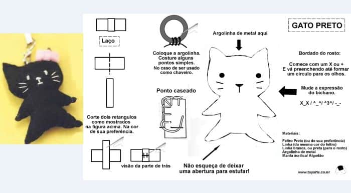 Para fazer chaveiro de gato de feltro você irá precisar de: