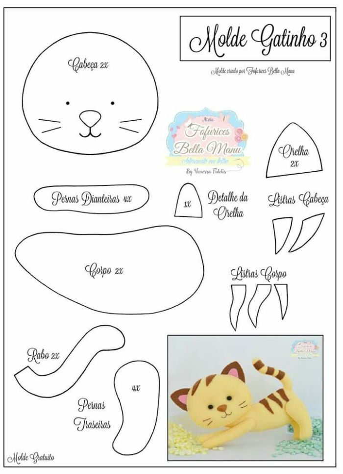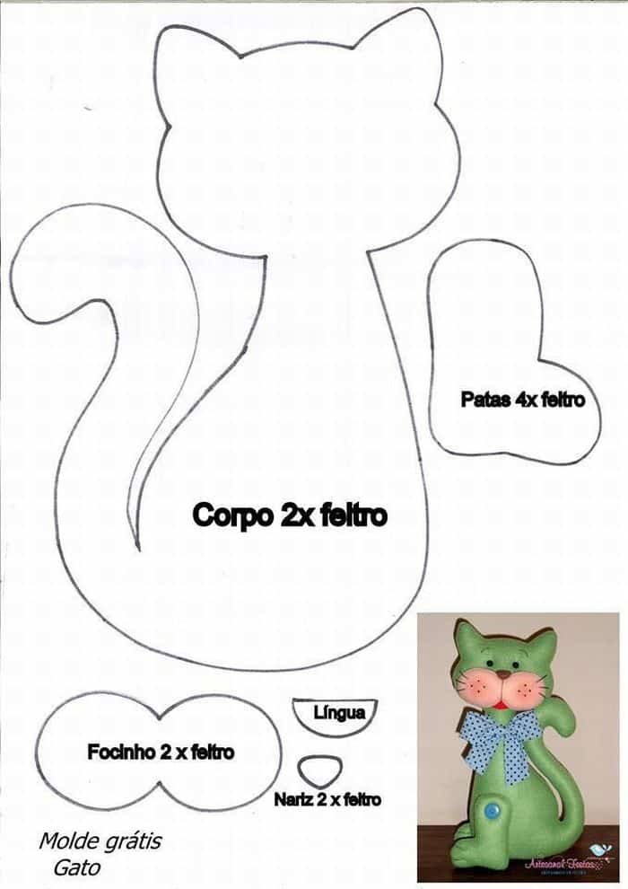 Você pode aproveitar todos os modelos de molde de gato em feltro, para levar mais sensibilidade para a sua vida através dos trabalhos manuais. Isso vai fazer muito bem para a sua profissão, caso faça artesanatos apenas como hobby, pois uma mente que trabalha em vários segmentos tende a ter mais experiências e a ter resultados melhores quando a concentração é exigida.