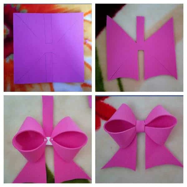 Veja abaixo um passo a passo para fazer um laço simples e bonito de EVA: