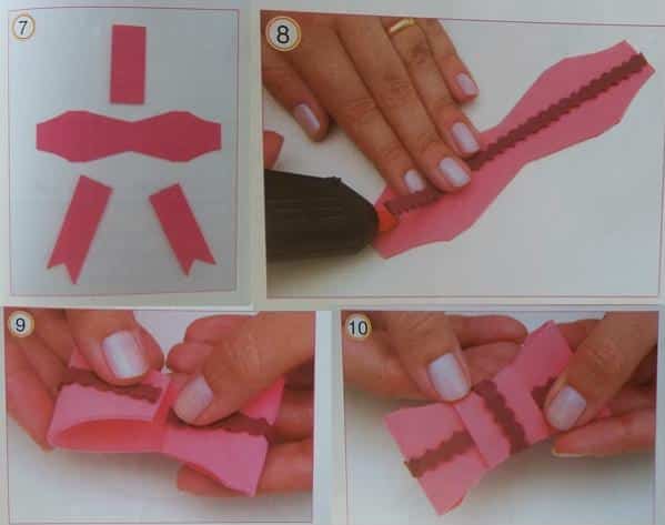 - Depois, cole as pontas do laço na parte detrás e também o meio do seu lacinho.