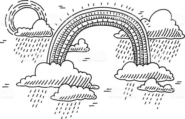 11 – Desenho de nuvem e sol com arco íris para crianças
