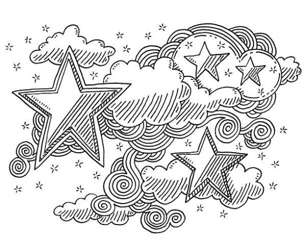 35 – Nuvens e estrelas para brincar de colorir com as crianças