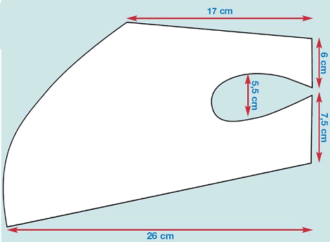 Primeiro coloque o molde (tamanho P) sobre o tecido dobrado, na altura, estando com a linha do meio na dobra. Faça o corte deixando 1 centímetro de sobra para a costura
