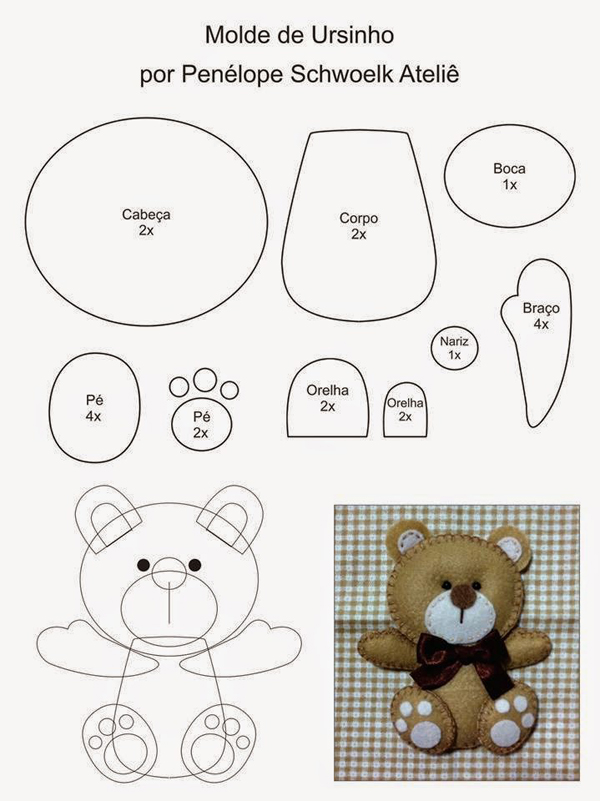molde de ursinho com feltro fofo