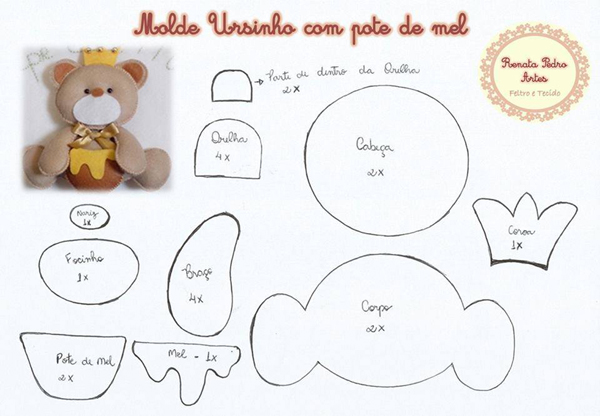 molde de ursinho com feltro com coroa
