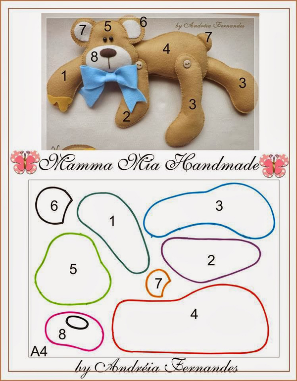 molde de ursinho com feltro inteiro