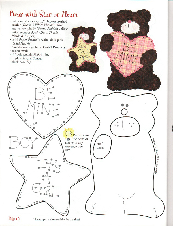 molde de ursinho com feltro com estrela e coração