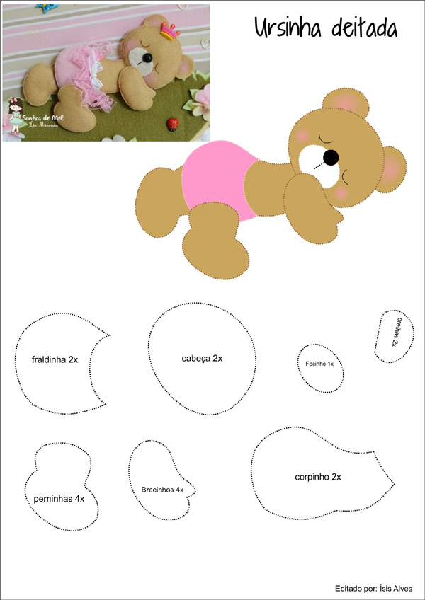 molde de ursinho com feltro deitadinho