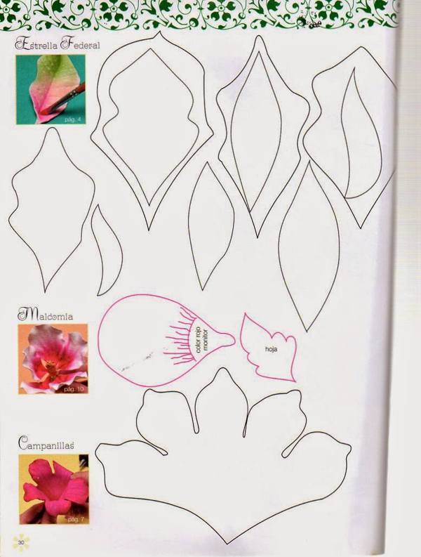O molde de flores para imprimir pode ter o tamanho que você quiser, basta você manipular o molde por um programa de computador que edita imagens ou imprimir o molde em seu tamanho original e depois ampliar à mão em um papel maior, caso queira uma rosa gigante.