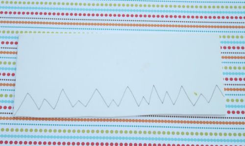 Logo após, na borda de placa de EVA branca, você vai desenhar os dentes do seu monstrinho. Se preferir utilize uma régua para ajudar neste momento. Você pode substituir o EVA branco por uma folha de ofício também, caso você prefira.