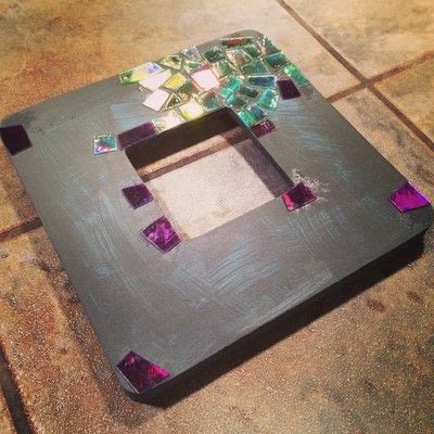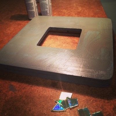 Comece a fixar em sua moldura os pedaços de CDs que você quebrou.