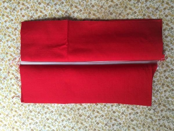 Em seguida, costure as quatro tiras de tecido ao redor do zíper, embutindo-o.