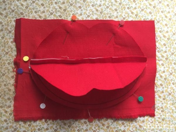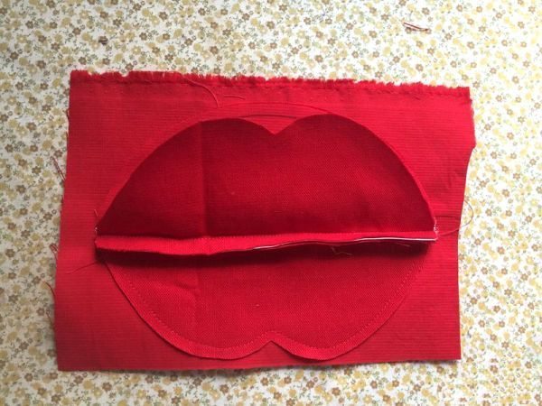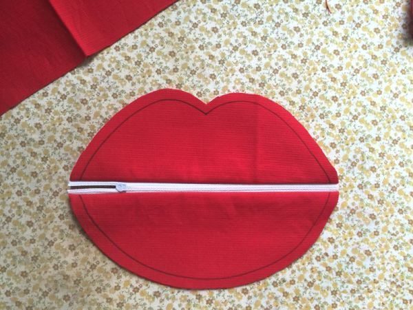 Logo após, desenhe o formato de lábios nas tiras largas ao redor do zíper.
