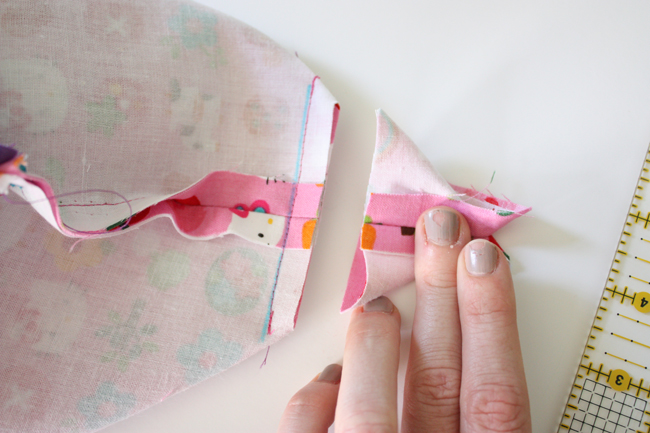 Costure e corte o excesso. Faça isso tanto nos cantos das partes principais quanto nos cantos do forro.
