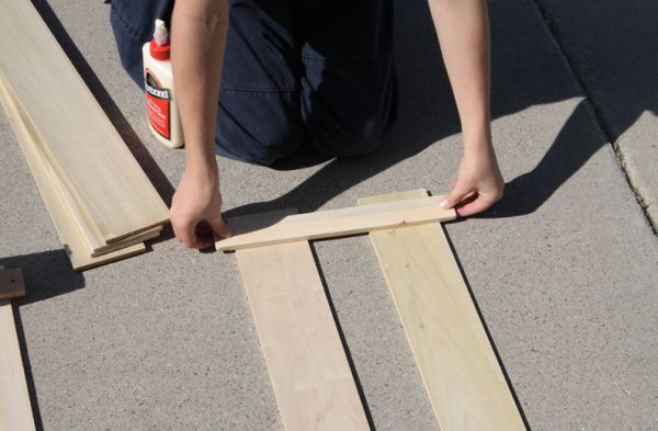 Comece serrando os pedaços de madeira até deixá-los como tamanho que você quer para sua peça. Você irá precisar de peças de madeira mais largas para ser a base e tiras finas para unir os pedaços e também para fazer uma gradinha de segurança. Depois de serrar todas as partes, lixe-as, e então limpe com um pano para limpeza limpo e seco. Depois comece a montar as partes de seu organizador, colando, com o auxílio da cola para madeira, as tirinhas menores nas pontas das tiras maiores, unindo-as.