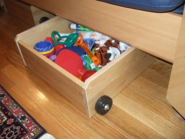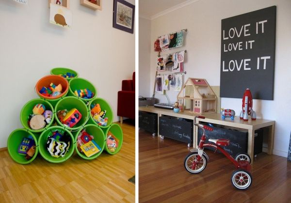 Pneus, escadas, gavetas, e até baldes, entre muitos outros itens, podem organizar os brinquedos de seus filhos.