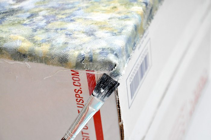 Cole a outra extremidade da parte de tecido e aplique muita cola para decoupage na emenda.