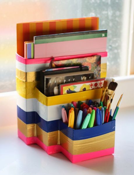 Logo após, termine de revestir todo o seu organizador de estudos com as fitas adesivas escolhidas.