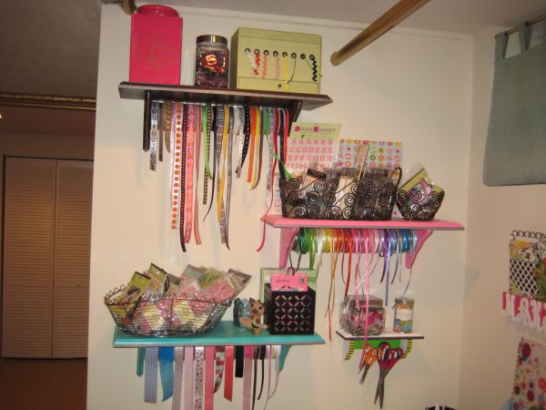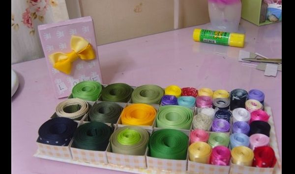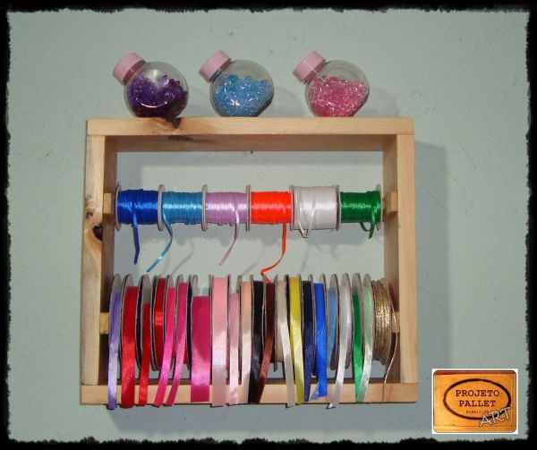 Mesmo com materiais recicláveis você consegue fazer um organizador, e um organizador bem prático, que acomoda muitos rolinhos de fita de cetim. Caso você goste de marcenaria, pode fazer até mesmo uma prateleira organizadora, para os seus rolos de fita de cetim. Prateleiras são sempre muito práticas e ótimas opções, porque não ocupam espaço sobre as mesas, apenas no espaço superior da parede.