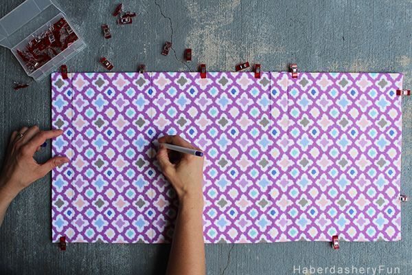Agora, marque onde serão as divisórias dos bolsos.