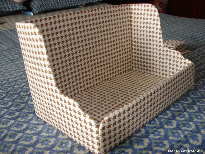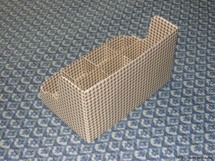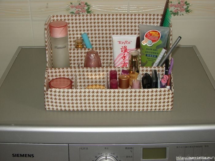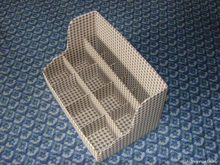 Este organizador para banheiro de papelão pode ter vários estilos, dependendo do tecido escolhido (Foto: marrietta.ru)