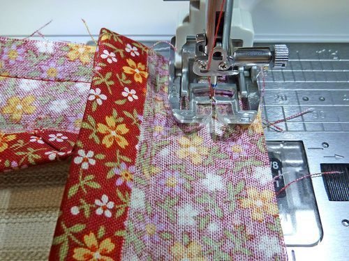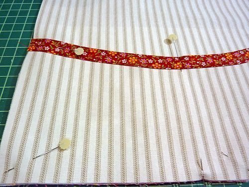 Agora, posicione uma tira de tecido na parte de baixo da sua peça. Costure.