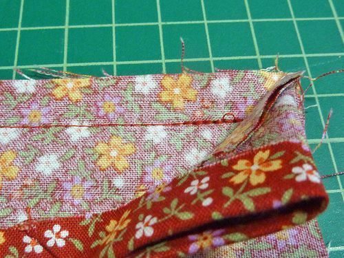 Em seguida, prenda e costure o viés na borda do bolso, mas com o forro do bolso por baixo.