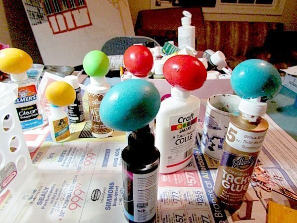Em seguida, se quiser, faça detalhes com outras cores de tinta nas cascas de ovos.